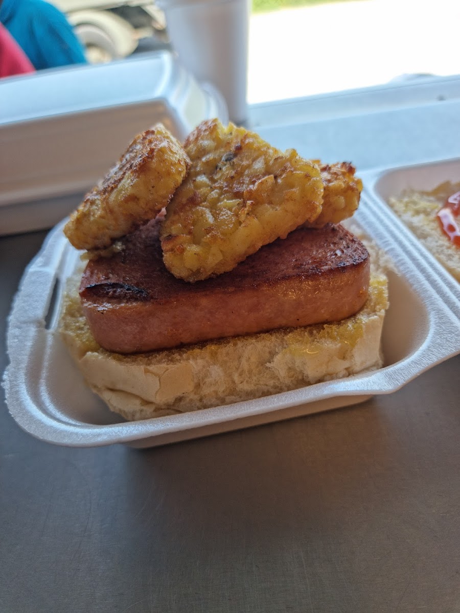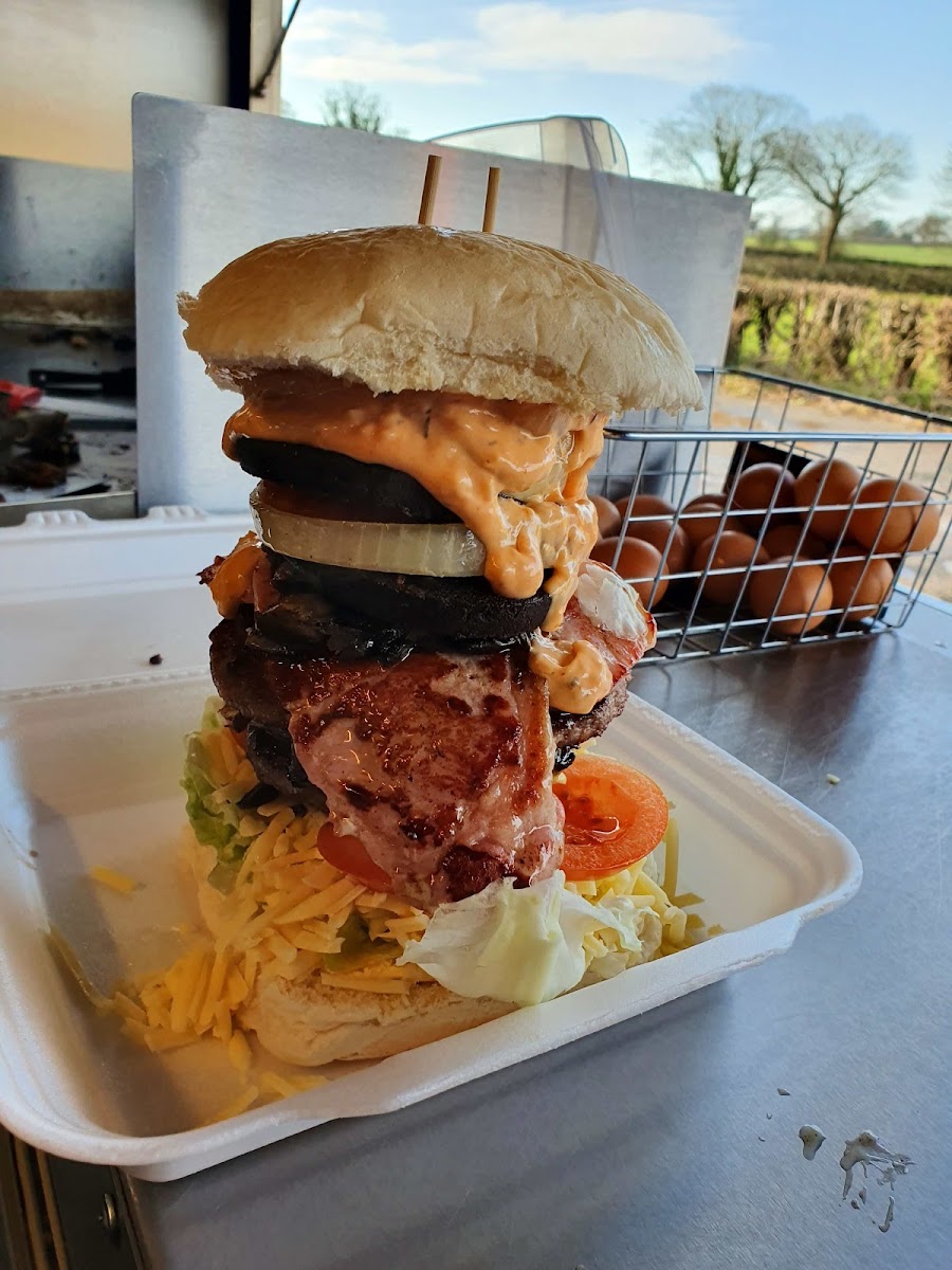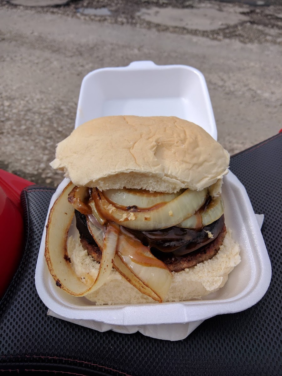 Amazingly tasty burger absolutely huge well worth the money with chunky cut onion not tiny little bits, I'll defo stop by again its the best butty van burger I've had